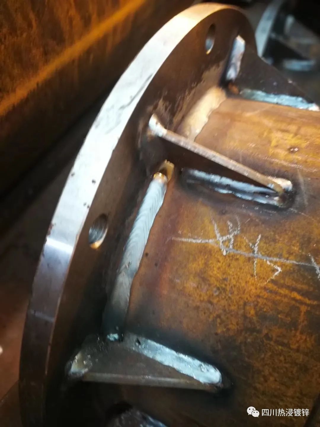 2、要求焊縫飽滿光滑、無(wú)焊渣飛濺,特別是焊渣會(huì)造成鋅顆粒包裹,鋅附著力降低;